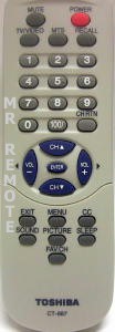 This TOSHIBA CT-887 is only one of the many TOSHIBA remote controls we carry. Enjoy the full functionality of on-screen menus and programming that only an original replacement remote can provide.